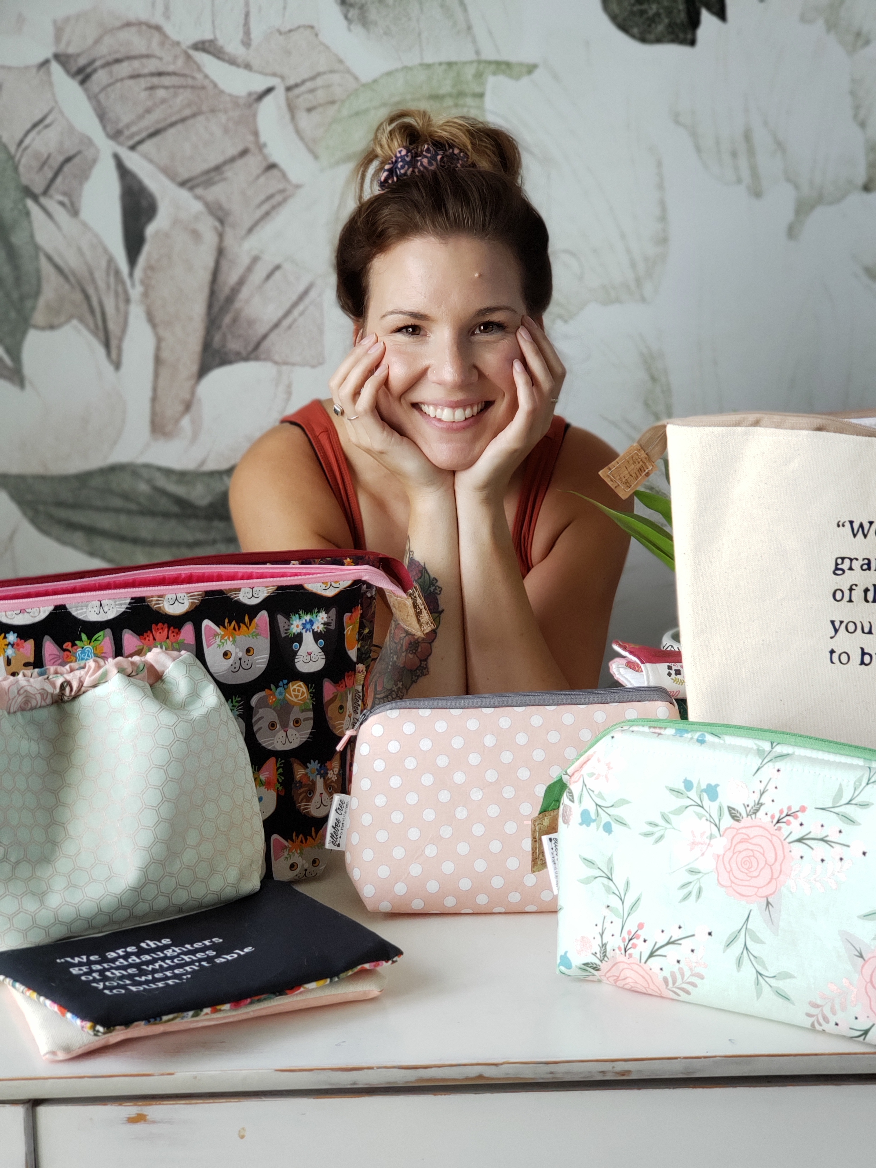 L: Hi!! Thank you so much for asking me to be a featured vendor! A little bit about me, well I’m Lesley and I am the owner and creator of The ElleBelleTree. I will start off by saying that I love all things bunny related, I will never turn away a taco and I absolutely cannot sing in front of people. I have always had a passion for creativity and textiles and I love the ebbs and flows of running a handmade business that incorporates those two things. I have a soft spot for nostalgia and love things with a vintage flair. Incorporating that into my life and my job makes me pretty ecstatic. And speaking of my work, The ElleBelleTree!! It has gone through quite a metamorphosis since its origins, but has settled on a great place that I have been able to kneel into. I refer to it as a whimsical accessory brand offering functional and handmade lifestyle bags as well as quirky and inspired home decor.