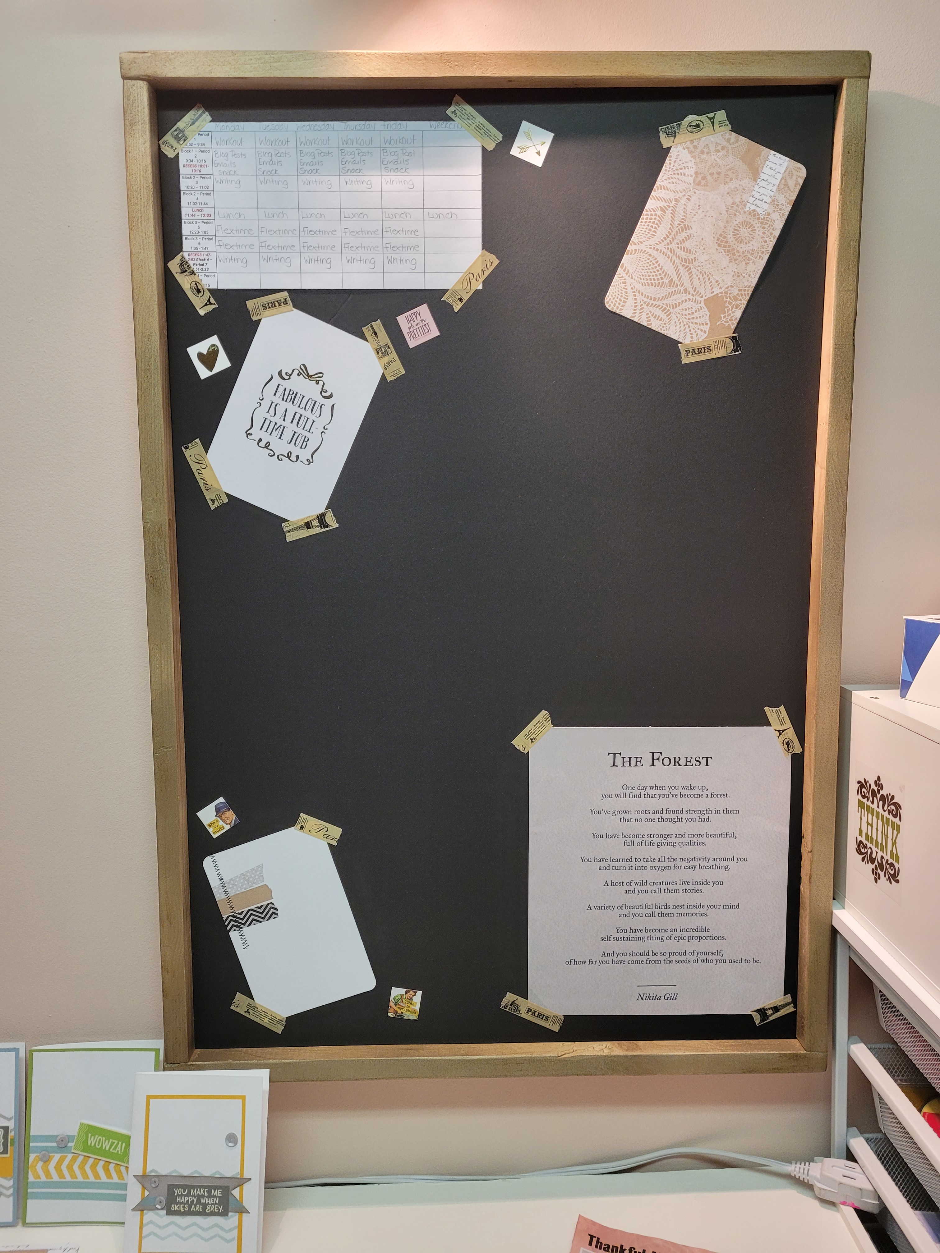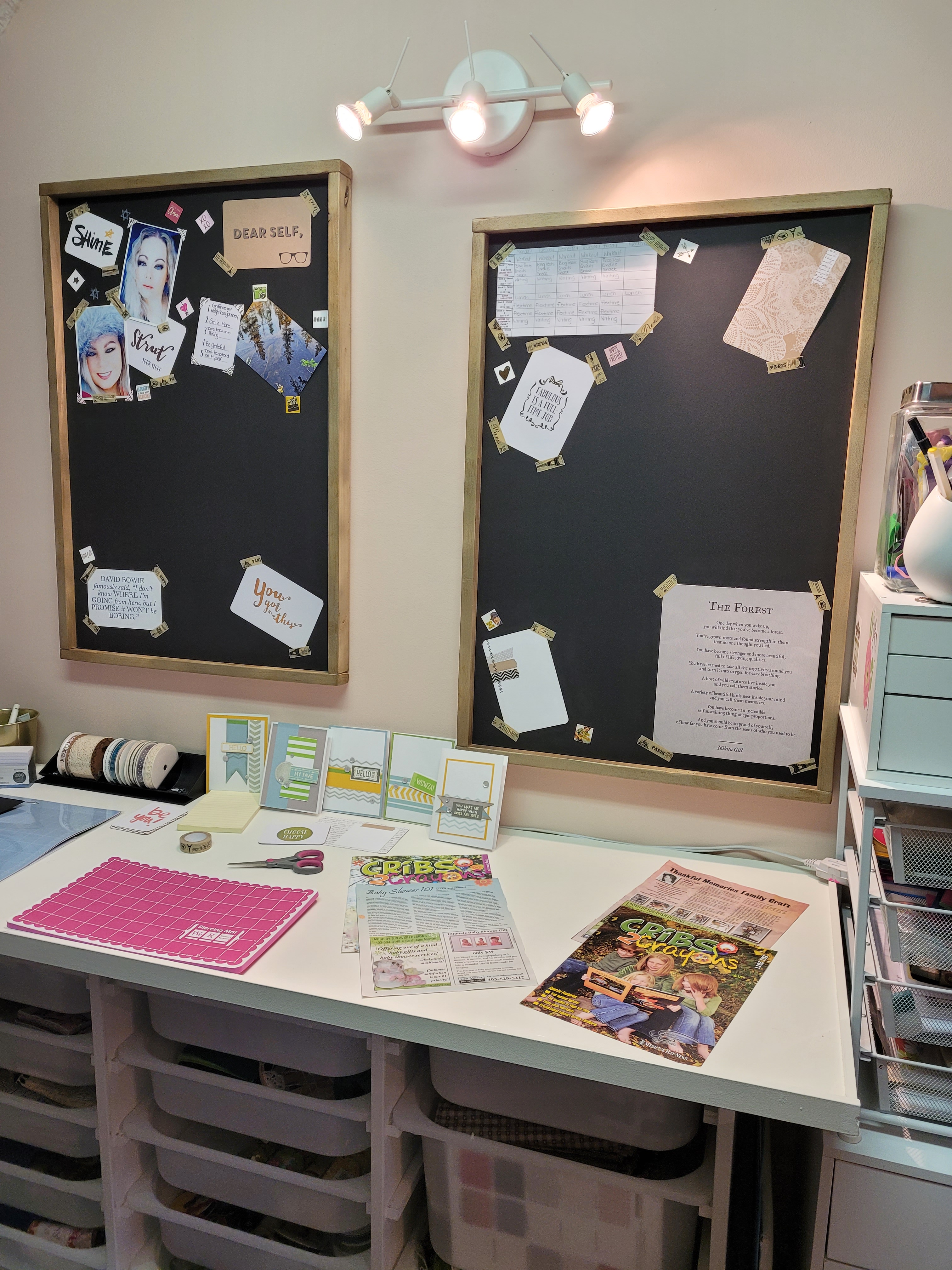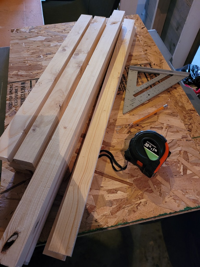 Welcome to DIY Wednesday on a Thursday that’s almost a Friday ugh. I fully intended to have everything uploaded last night however I was having some issues with my fine motor skills and packed it in for the day instead. So for my first DIY I’m going to show you some Vision boards I whipped up to go in my “in progress” renovated office. All the details, before and afters will be coming soon I just thought I’d share this little project in the meantime. When coming up with a design plan for the boards the only thing I was sure of was I wanted 3 and I didn’t want them to be on poster paper. That was it and the idea didn’t come to me until I took apart a desk extension I had done and didn’t want to toss the plywood. I love a good repurpose so I had the plywood and I had 8 foot lengths of 1×2 spruce in my garage as well. I took a trip to the local dollarama and found foam poster board. It’s about a 1/4 inch thick and comes in white or black, I grabbed 3 pieces of the black. I decided I would do the full sheet of foam board so depending on your needs, space size etc all cuts will be different however this will work either way. I measured the foam boards and cut the plywood to the exact size of the foam board. I then measured the 2 sides and cut 1×2 pieces to fit, once cut I measured along the top accounting for the 2 sides as well and cut pieces for the top and bottom.