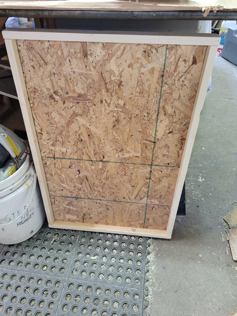 Make sure to sand everything smooth and using an air nailer, 1 1/2 inch nails secure your sides to the plywood followed by your top and bottom creating a frame. If u have wood glue on hand use a thin line of that as well make sure it’s really secure. Repeat for as many boards that you are creating and u should end up with something like below.