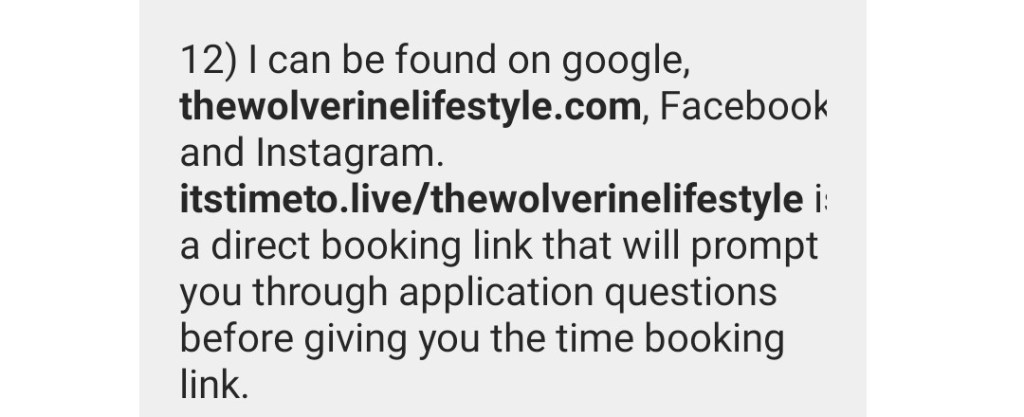 D: The Wolverine Lifestyle is one of the proudest things I’ve ever done in my life. This coaching business showcases many of the trials where I had to trench through the muk (the difficult way thanks to my years of stubborness), so others don’t need to make the same mistakes I made. Based around finding one’s true unshakeable self confidence through habit and perspective shifts. I like to call these “Mind Re-wirements”.