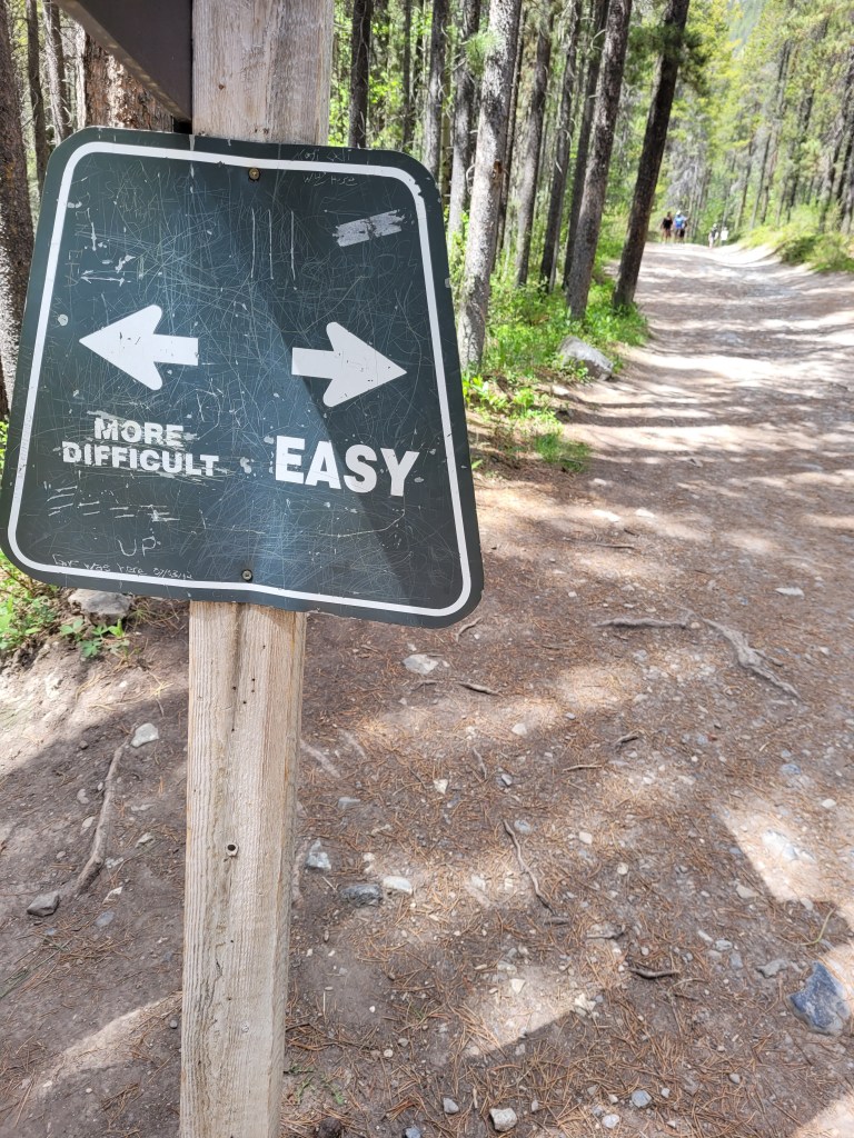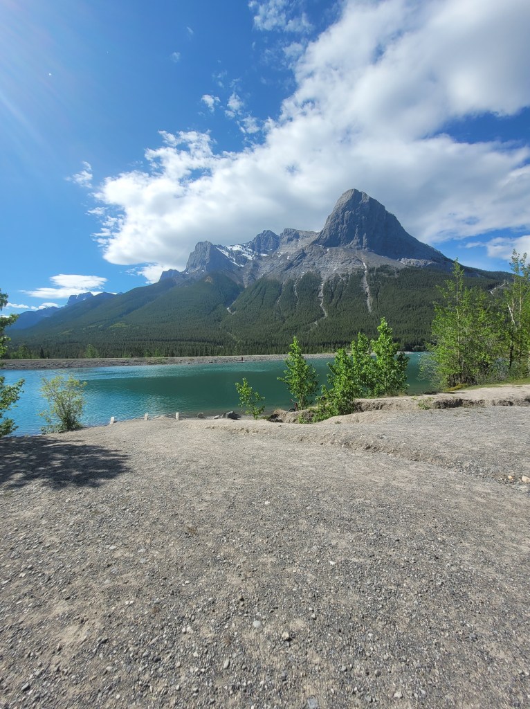 So, I decided to go for a hike lol, yes, just like that. But like a newbie I didn’t do a lot of research on what would be easiest for someone who A) never done it and B) had a medical condition that limits mobility. Pffft I didn’t say I was smart all the time, all I knew was I wanted a waterfall at some point in the hike. To the Google we went, and we picked Grassy Lake by Canmore, Ab. I packed water bottles and snacks for when we were done, and we hit the road. Did I mention I fly by the seat of my pants sometimes? It’s about a 2.5 hour drive from where I live and a pretty drive depending on route. Parking is a bitch just a forewarning so either go early or be prepared to have to park a mile down the road in another parking lot and walk down. We got lucky the first time however the following times we had to park and walk.