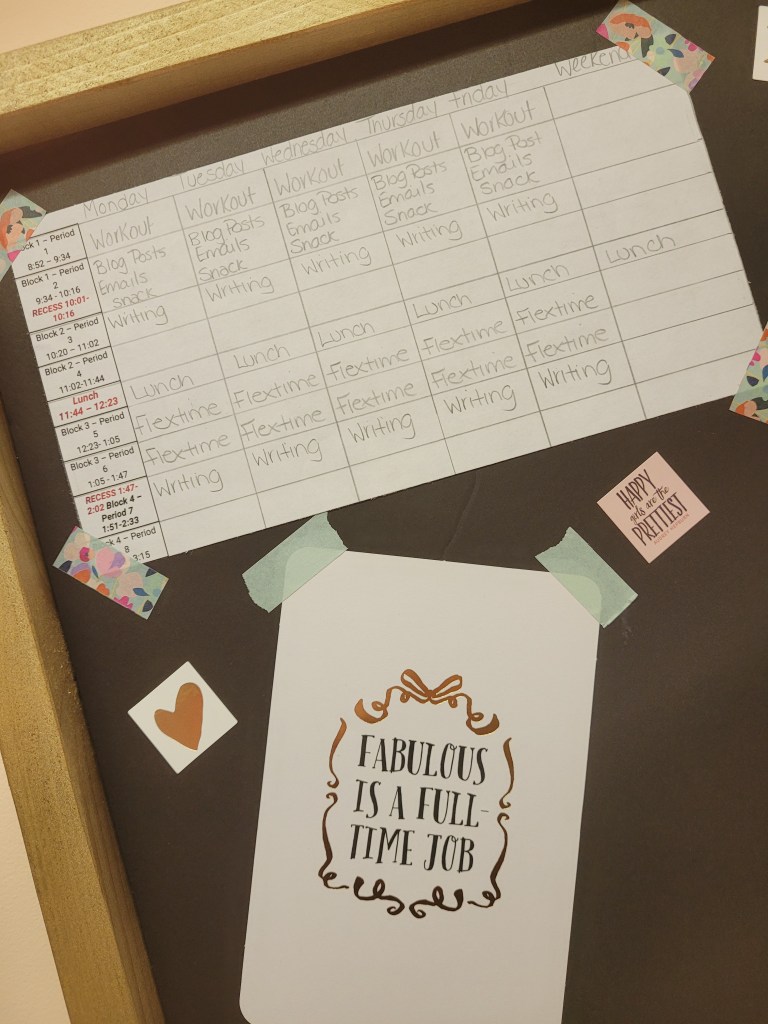 This is what the schedule looks like and I wrote it in pencil so I can make adjustments as needed. Flex time is usually appts,groceries,housework etc.