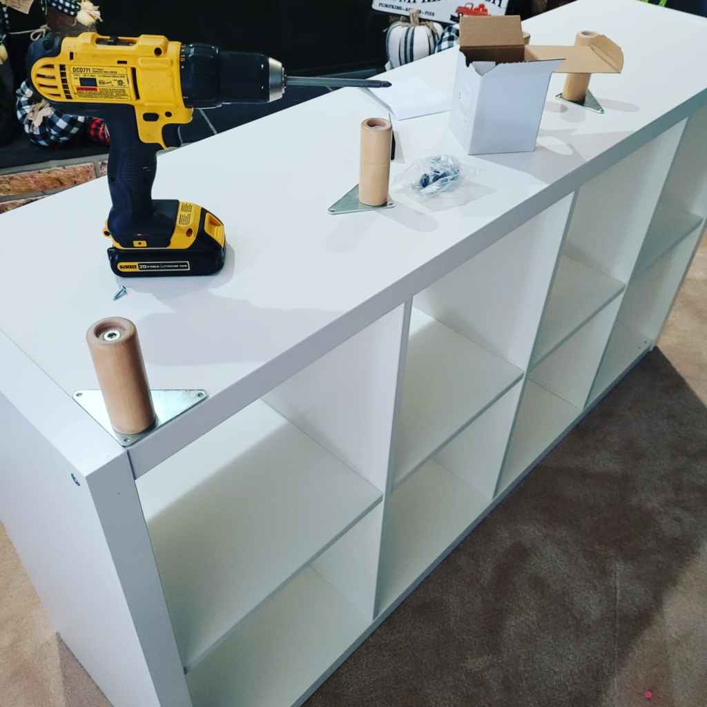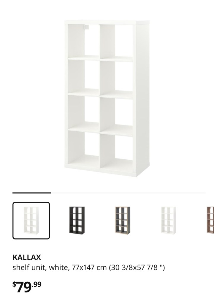 I took a trip to the city and purchased 3 Kallax bookcase from Ikea. I should say I bought 1 the first time and loved it so much I went back for 2 more after seeing how it looked, how easy it was to complete and the look it gave my spaces. I took my time looking online before I went and with shortages, shipping delays at ports etcetera I recommend making sure all items are in stock before u venture into the store and if possible, purchase and pick up so you aren’t disappointed. Covid makes everything harder ugh. Back to the projects, I knew I wanted legs on them somehow to give the bookcase a fresh look and less plain. I went on the ikea app, entered legs in the search bar and I found a set of 4 for $20 that went with another item but would work for mine. They come in a light beige wood, so they are easy to stain or paint if u want a different color. They have a selection of other legs to choose from based on your look or needs. Mine are called Eket legs. I got the shoe organizers and bins from Ikea as well. You can find similar shoe boxes and bins at the dollar store if you’d like to save some more. In this instance I just wanted a one stop shop. Bins are $5.99 each, I bought 8, 4 each for 2 of the bookcases. The shoe organizers were $7.99/ pk of 4. I already had the clear containers from the Dollerama at home, but they are 3-4 dollars depending on the sizes you get.